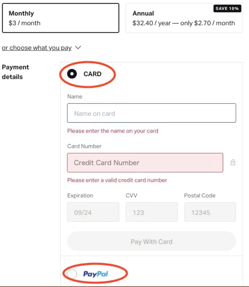 4・Monthly(月額3$)かAnnual(年額32.4$)を選択