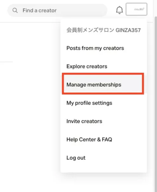 ②Login後、ページ右上のアイコンをクリックしてManage membershipsへ進む